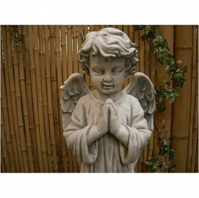 Wunderbarer schöner Engel aus Steinguss, in stehender und betender Haltung.